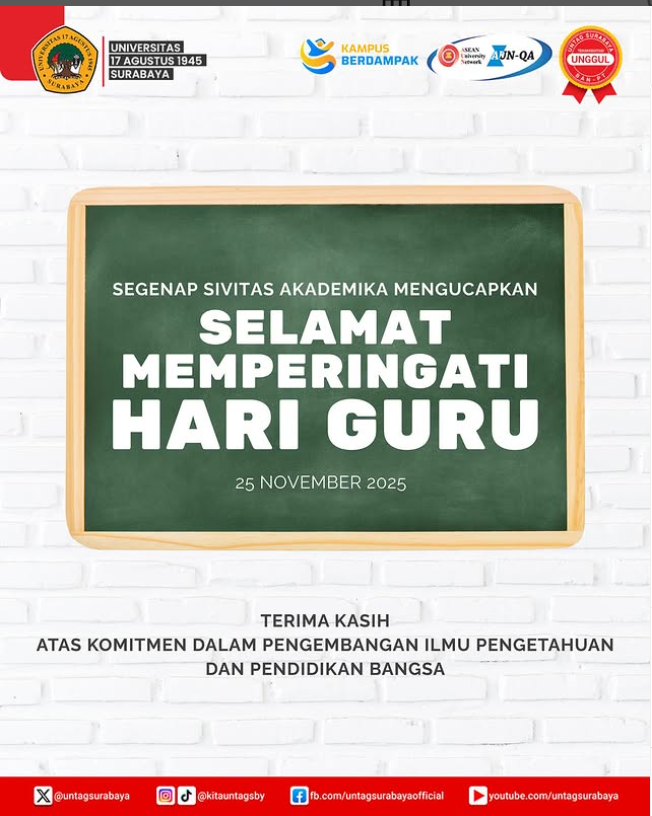 Segenap civitas akademika Untag Surabaya menyampaikan Selamat Hari Guru...