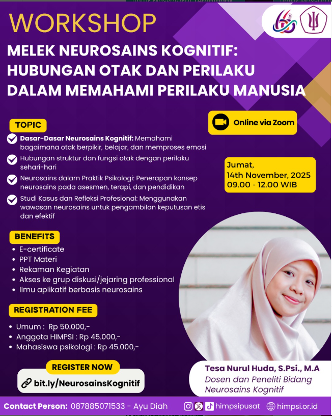 Workshop; Melek Neurosains Kognitif; Hubungan otak dan perilaku dalam memahami perilaku manusia