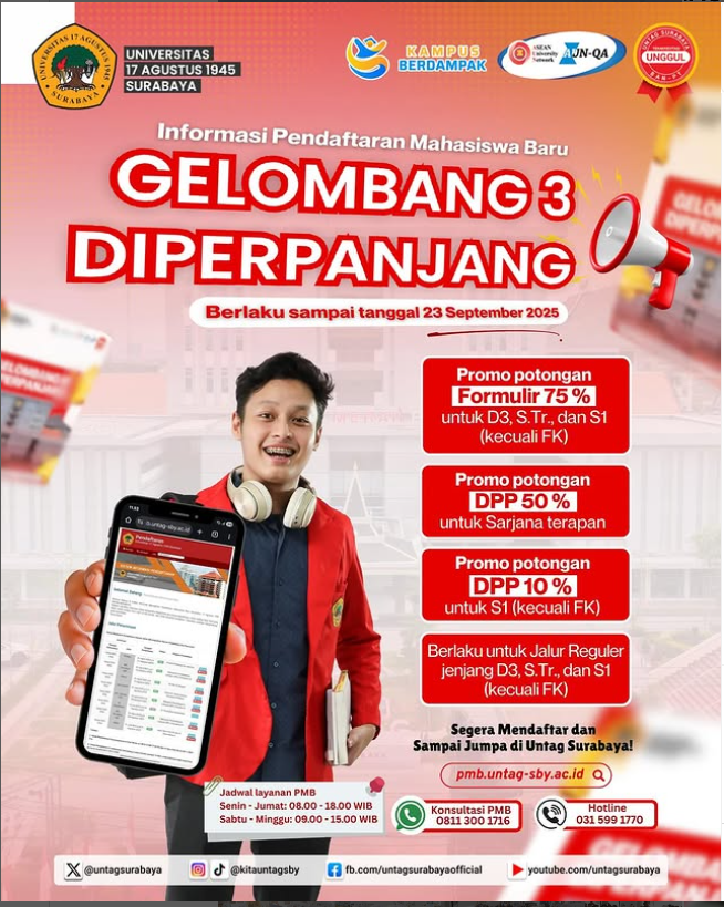 Halo, Sahabat Merah Putih! Untag Surabaya kembali memberikan beasiswa melalui...