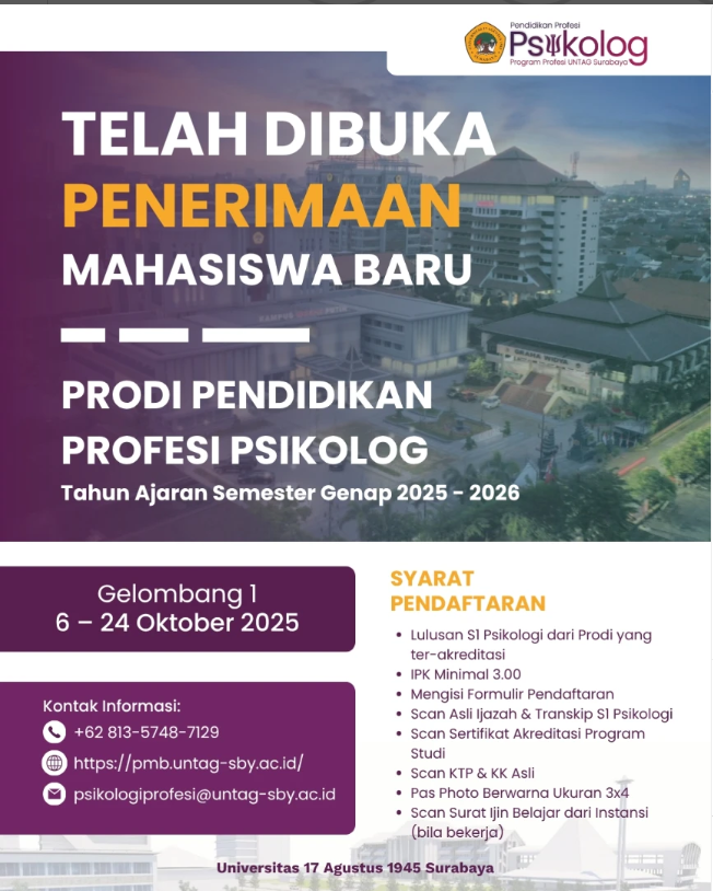 Pendaftaran Mahasiswa Baru Psikolog Umum Gelombang 1