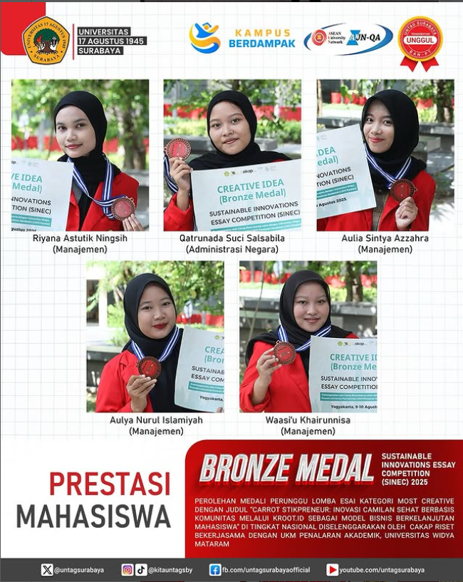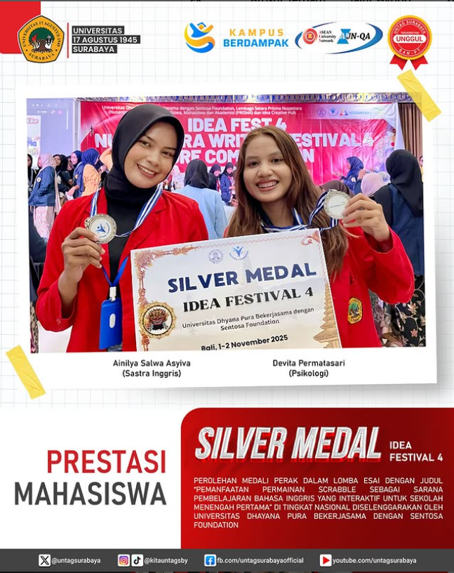 Dua mahasiswa Untag Surabaya sukses membawa pulang medali perak pada Lomba Esai...
