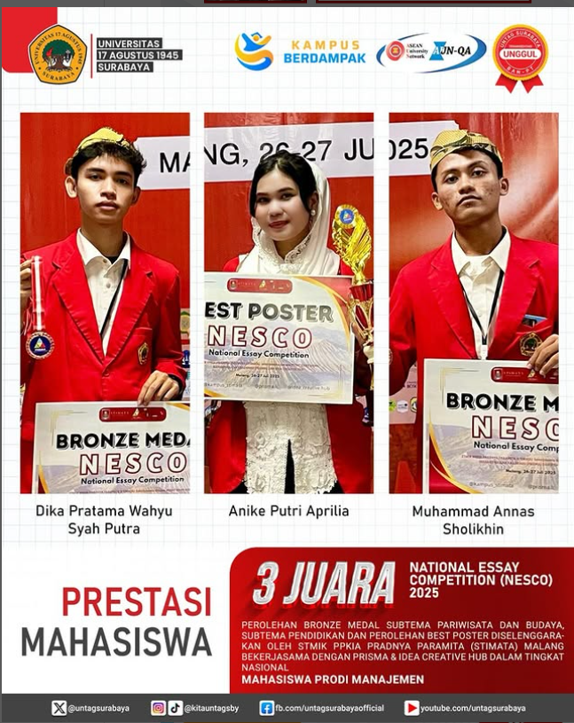 Mahasiswa Untag Surabaya kembali mengukir prestasi membanggakan di ajang...